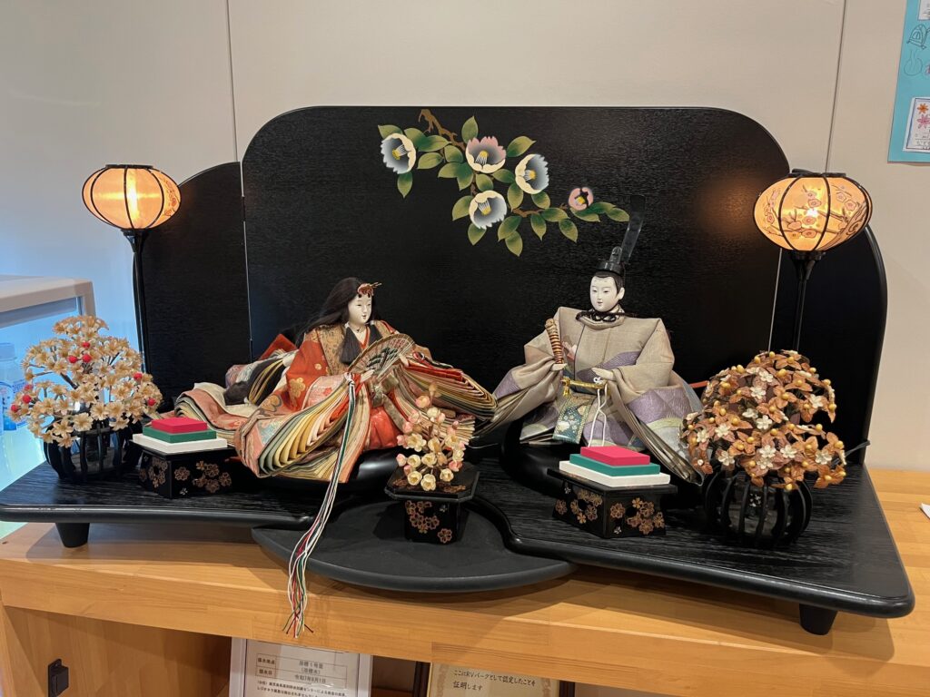 ただいま銀の湯のフロントでは、華やかなお雛様を飾っています。